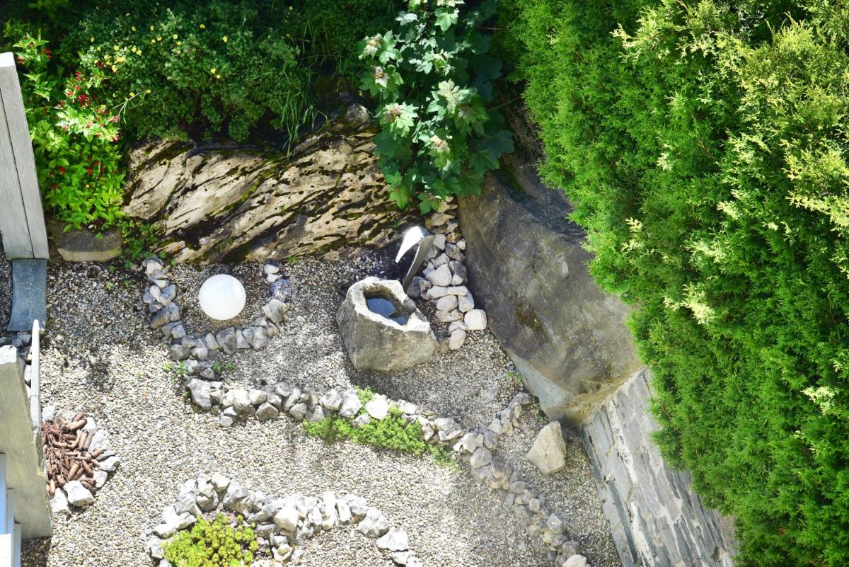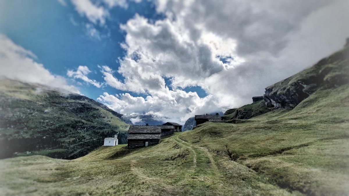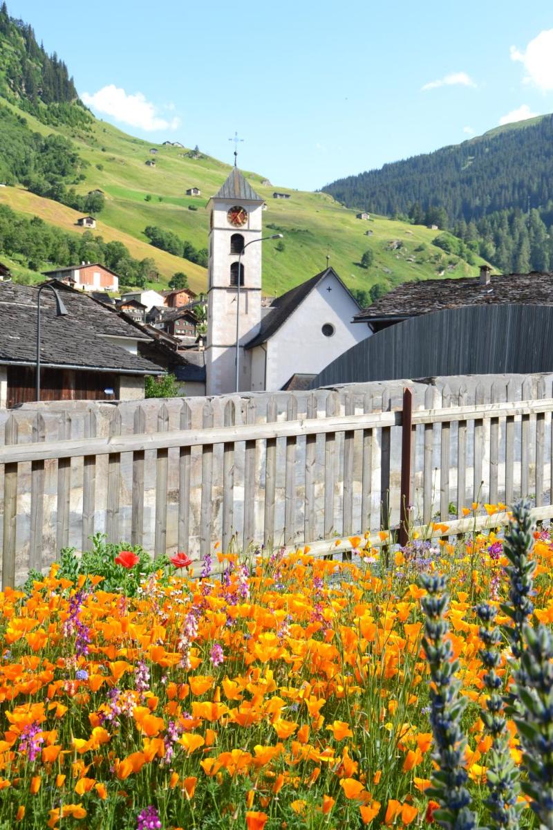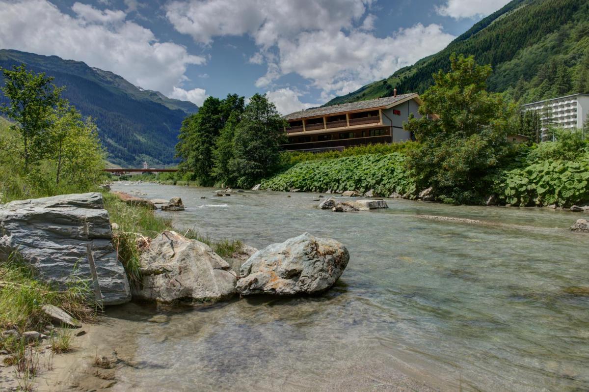 Guest room images emphasize wooden finishes, crisp bedding, and mountain-facing windows. Exterior photographs show the hotel integrated into the Vals valley landscape, framed by steep slopes and open sky.