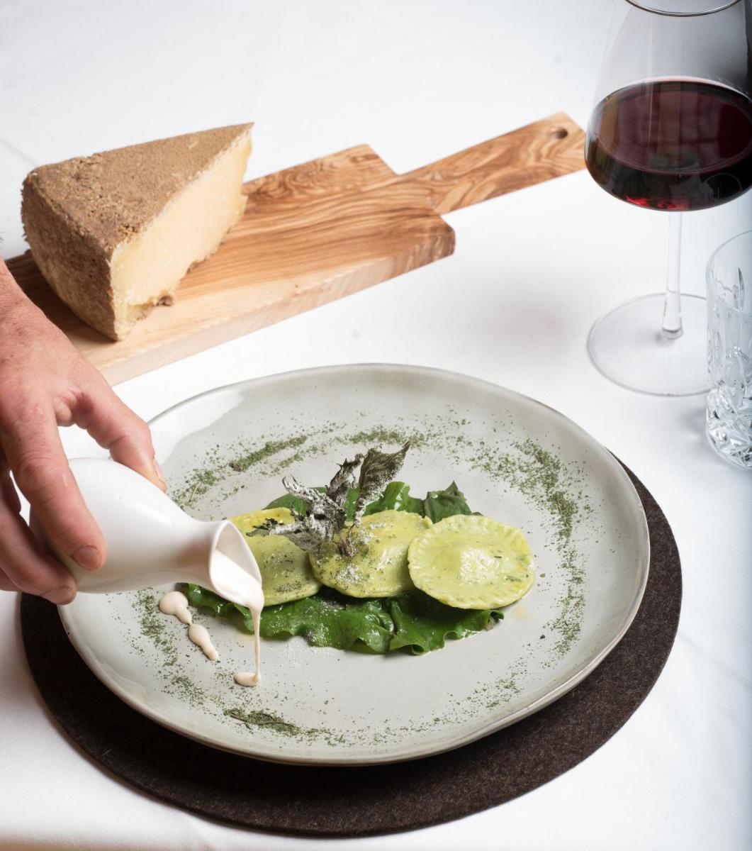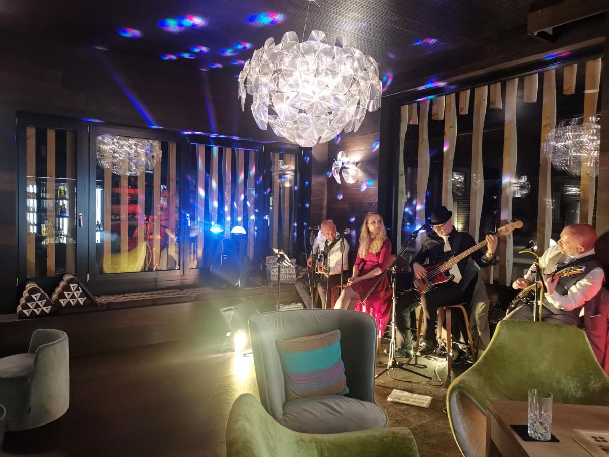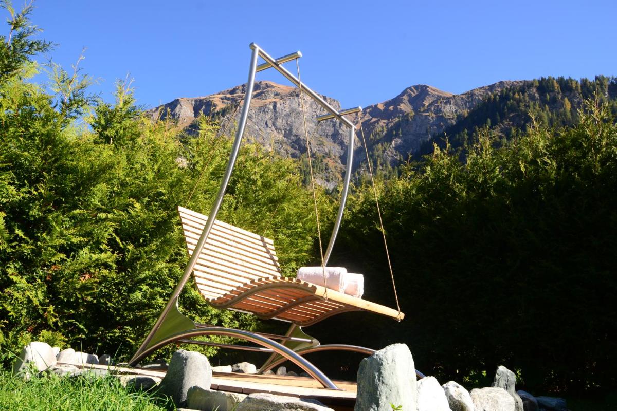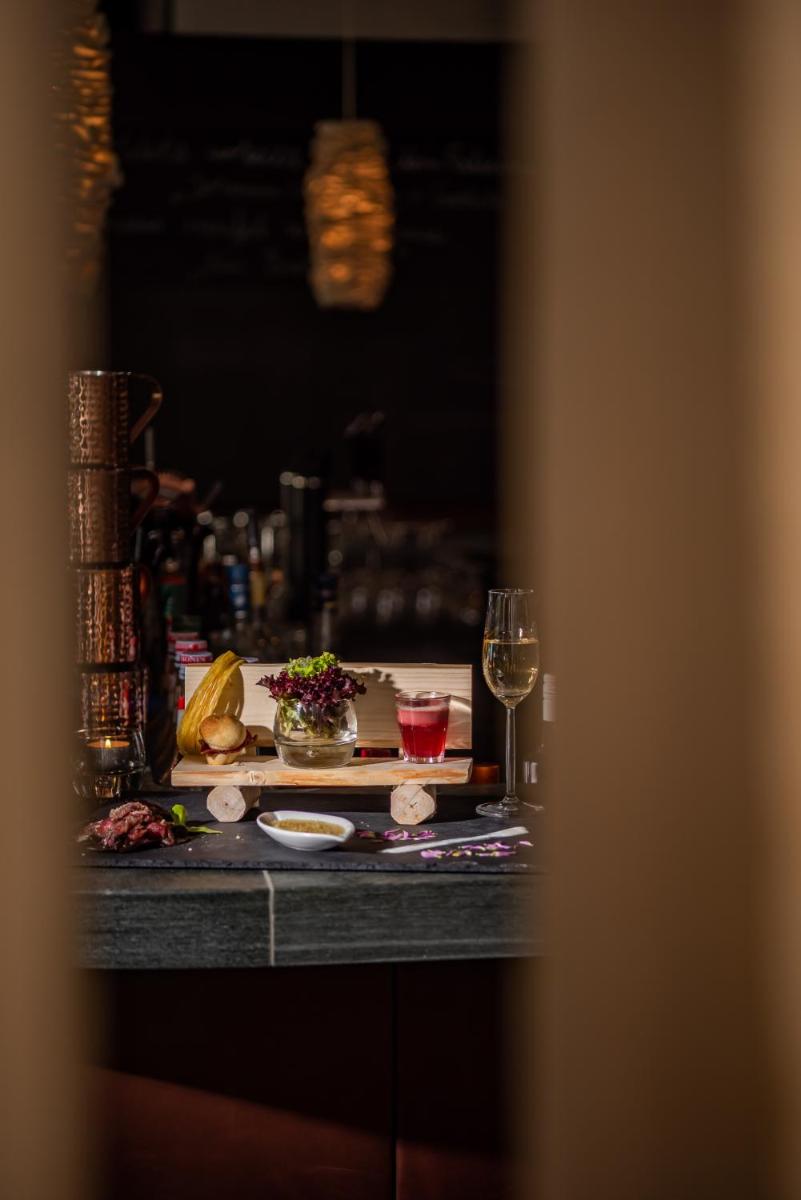 Indoor wellness spaces and mountain surroundings shape the hotel’s visual identity.
